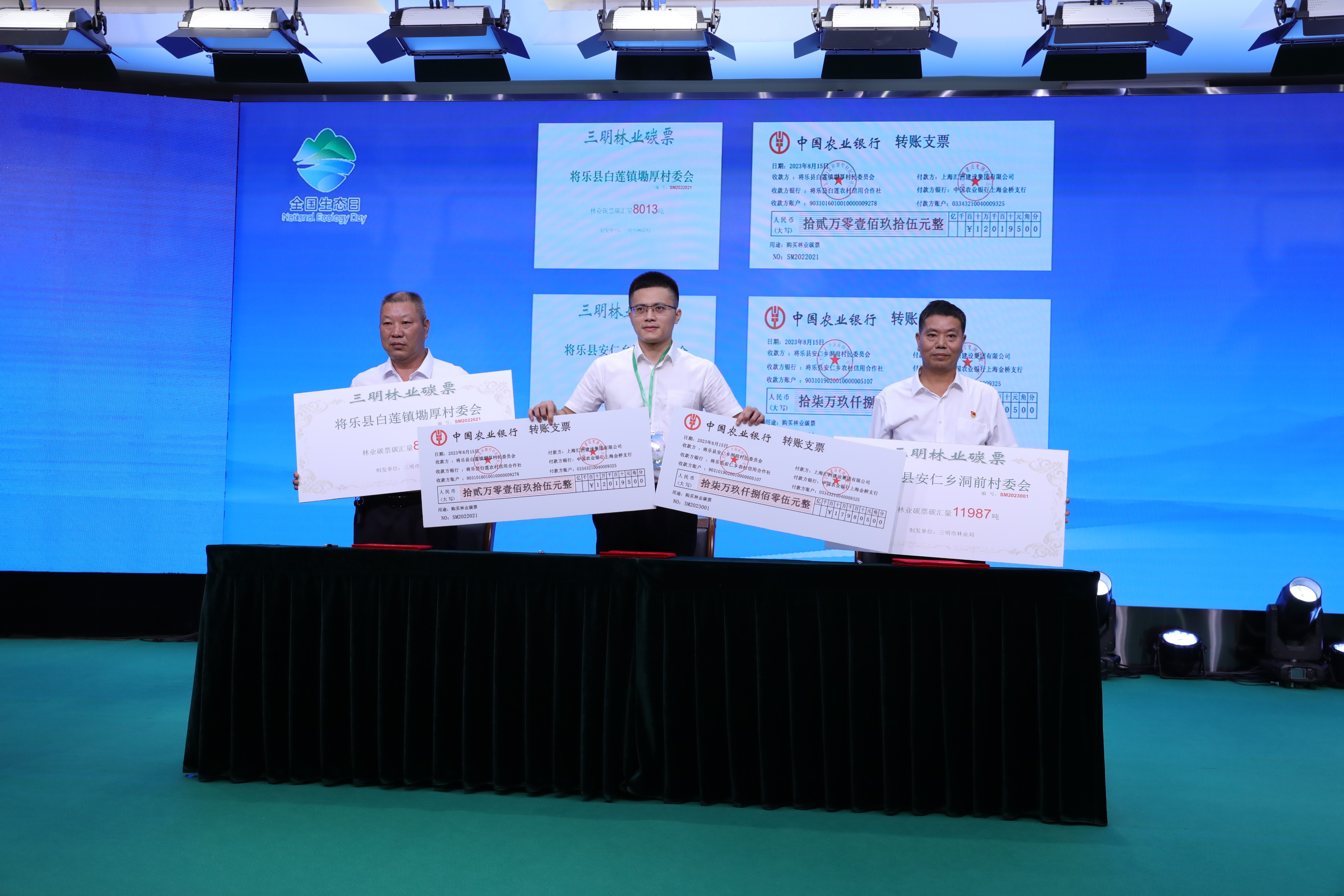 2023年8月15日全國(guó)生態(tài)日福建活動(dòng)在將樂(lè)縣??诖迮e行。福建金森引薦上海匯州建設(shè)集團(tuán)有限公司購(gòu)買(mǎi)將樂(lè)縣白蓮鎮(zhèn)墈厚村及安仁鄉(xiāng)洞前村共計(jì)2萬(wàn)噸林業(yè)碳票,完成全國(guó)首次林業(yè)碳票的跨區(qū)域銷(xiāo)售。